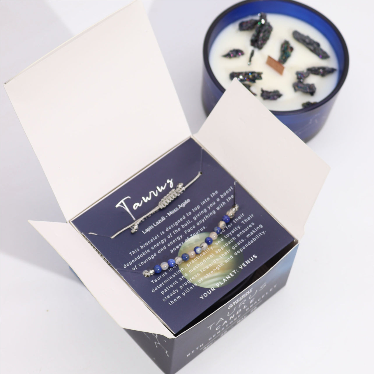 La pulsera combina piedras que acompañan la calma y determinación de Tauro.