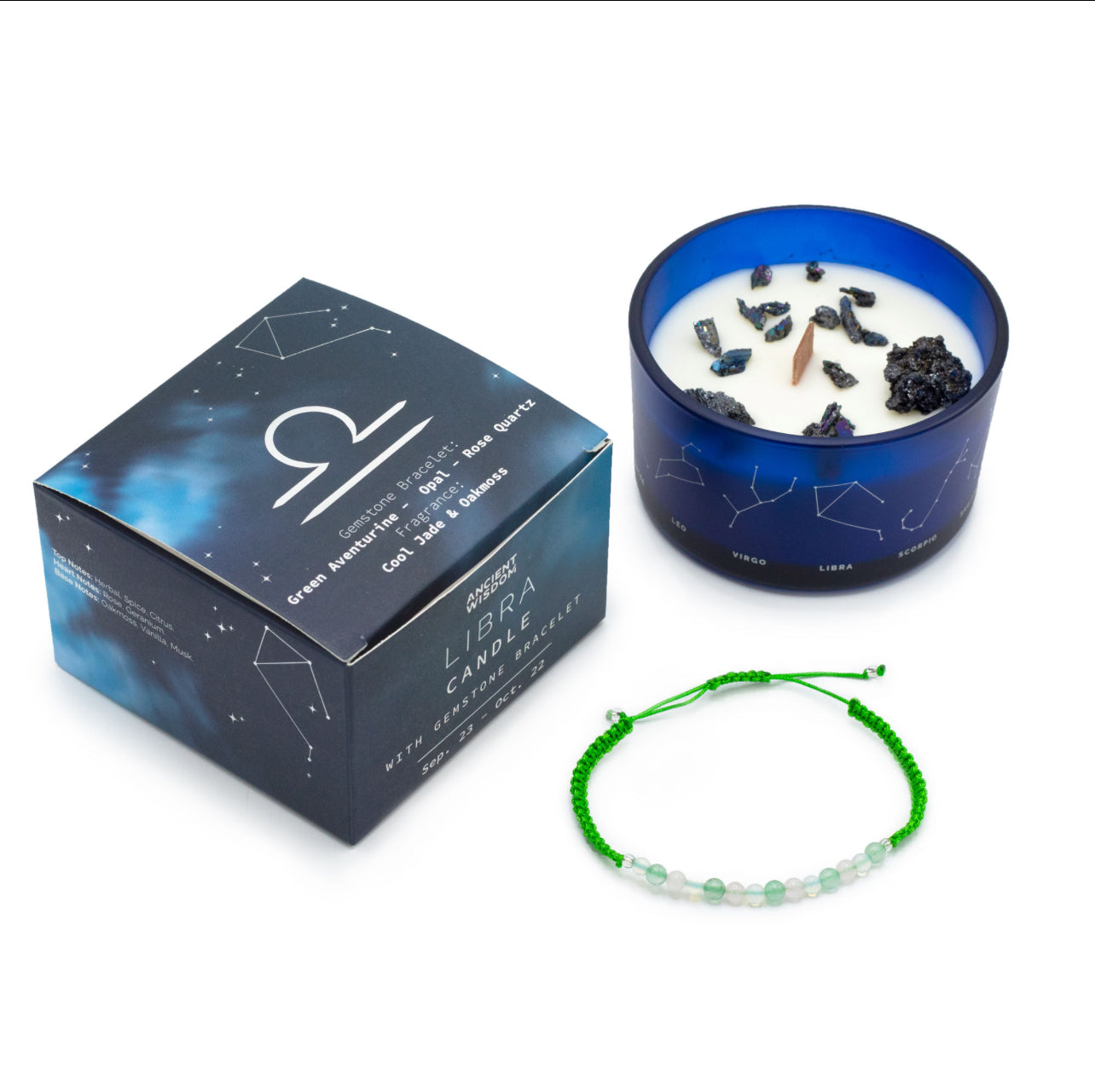 ♎ Vela de Libra — Aventurina verde, Ópalo y Cuarzo rosa
