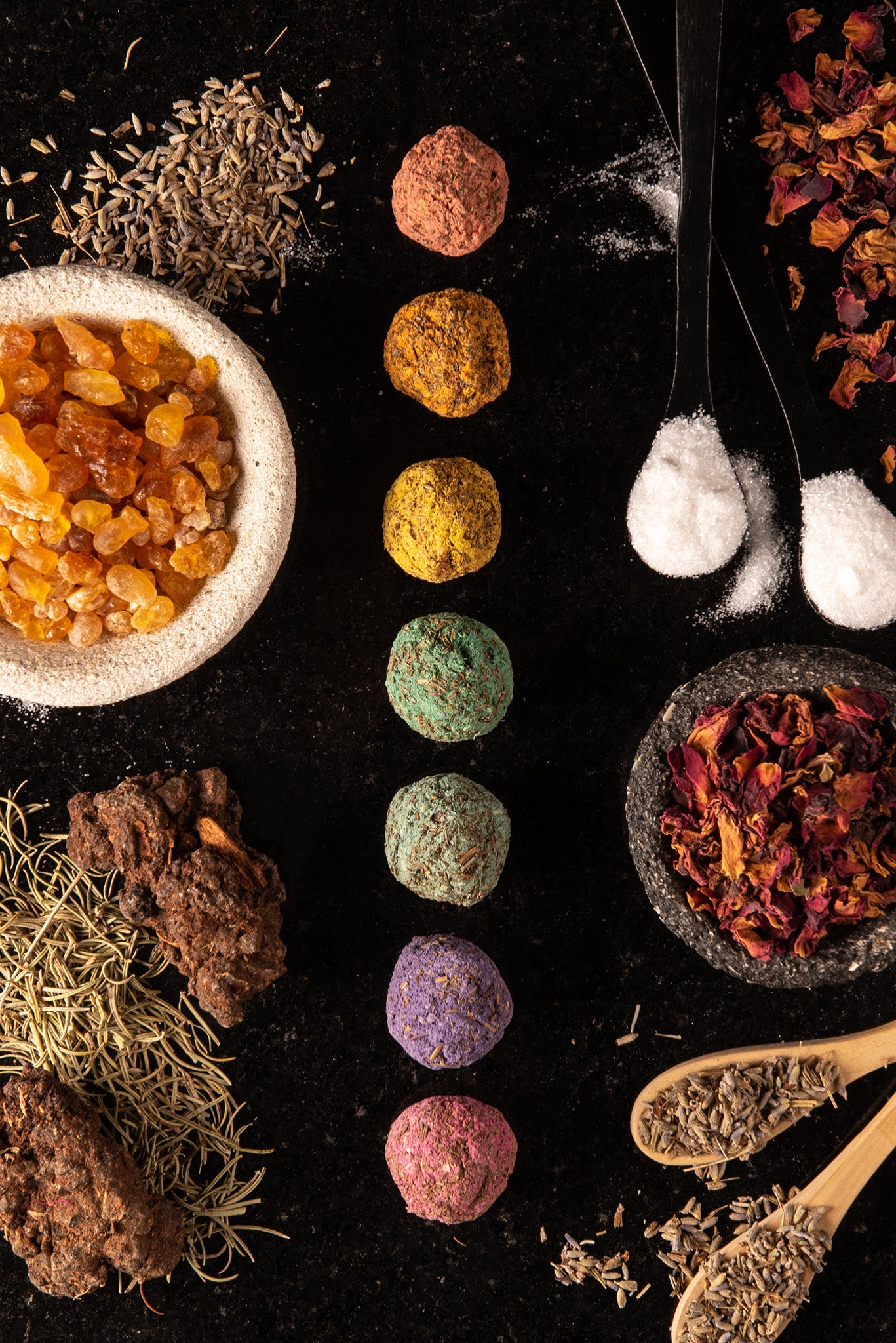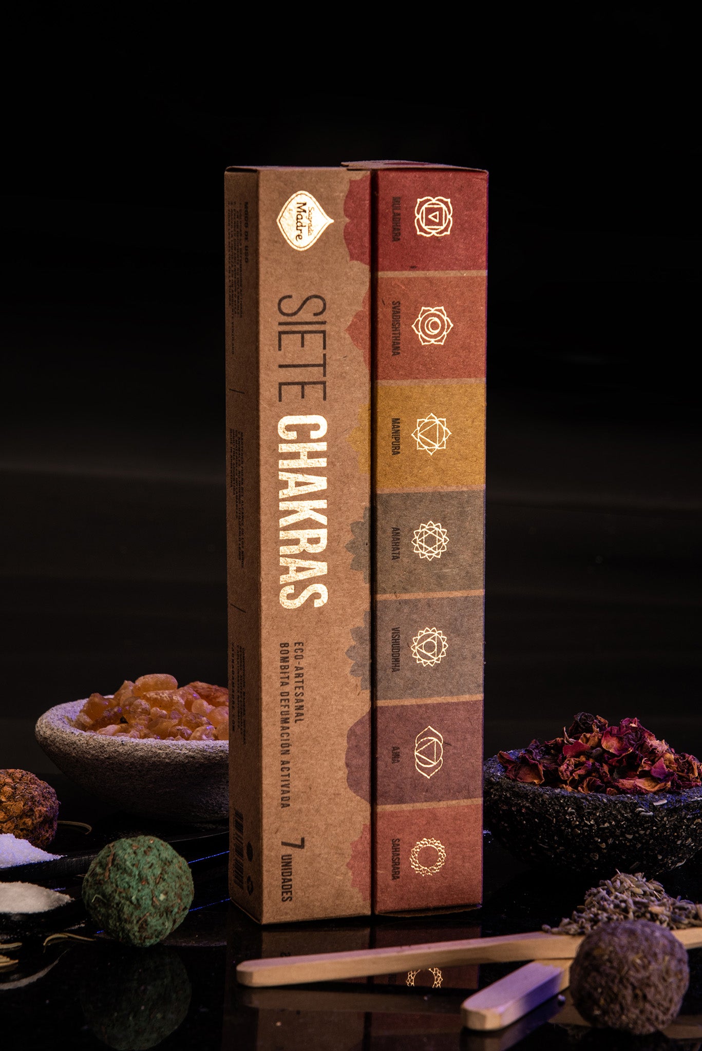 Contenido: pack de 7 bombitas compactas, una para cada chakra, listas para usar sin necesidad de carbón extra.