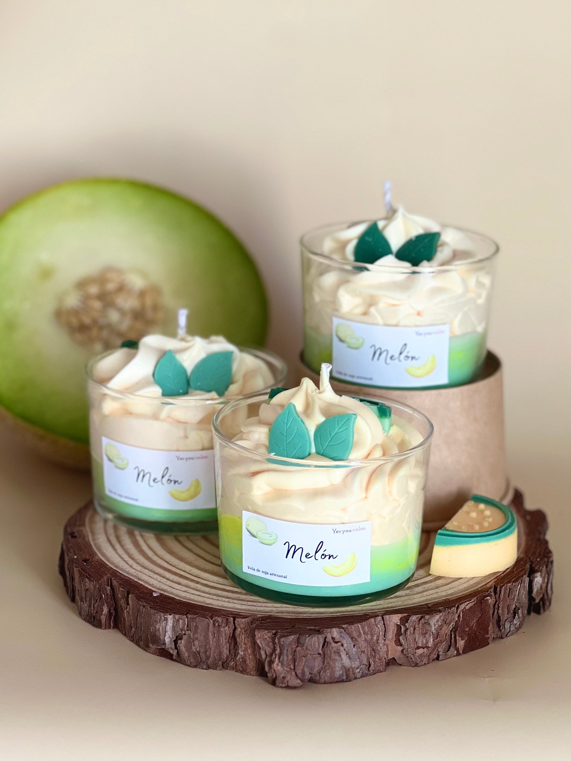 Una delicia visual y olfativa!!! Esta velita de melón huele EXACTAMENTE al chicle de melón, ese verde brillante que nos hacía la boca agua cuando éramos peques 🍈💚 No necesita ni estar encendida para llenar tu espacio con su aroma dulce, fresco y ultra jugoso. ¡Una fantasía!