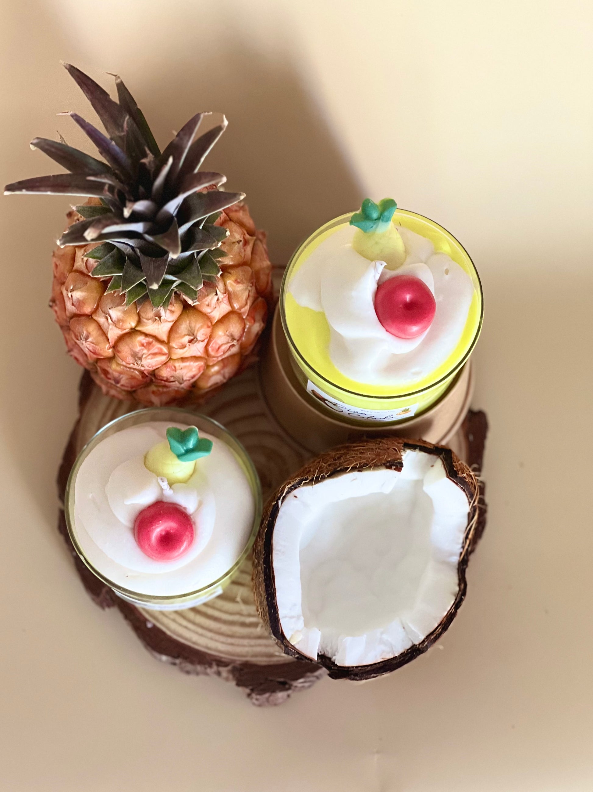 La vela perfecta para transportarte a una playa paradisíaca con solo olerla!!! 🏝️✨ Tiene ese aroma tropical delicioso de piña colada, con toques de coco cremoso y un fondo dulce que huele igualito a vacaciones. Es una fiesta exótica en forma de vela 🍍🥥