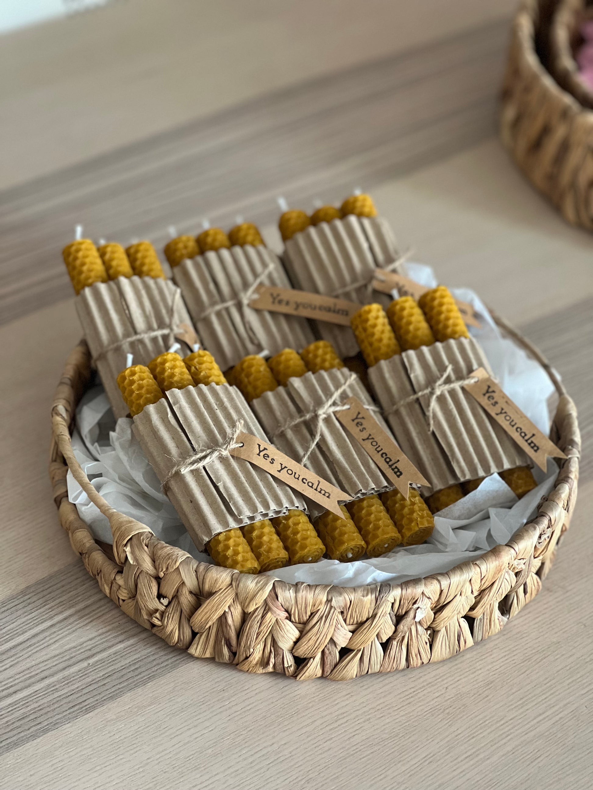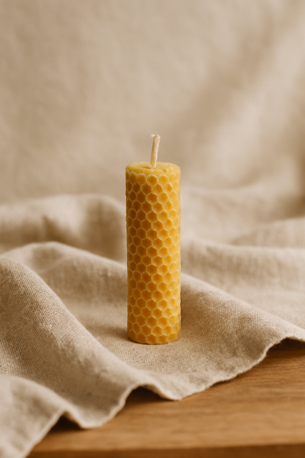 Esta velita está hecha a mano por Yes You Calm con cera de abeja 100% natural en forma de panal. No lleva perfumes ni aditivos, solo la cera pura que producen las abejas. Su aroma es suave, dulce y natural, y se nota incluso sin encenderla 🍯