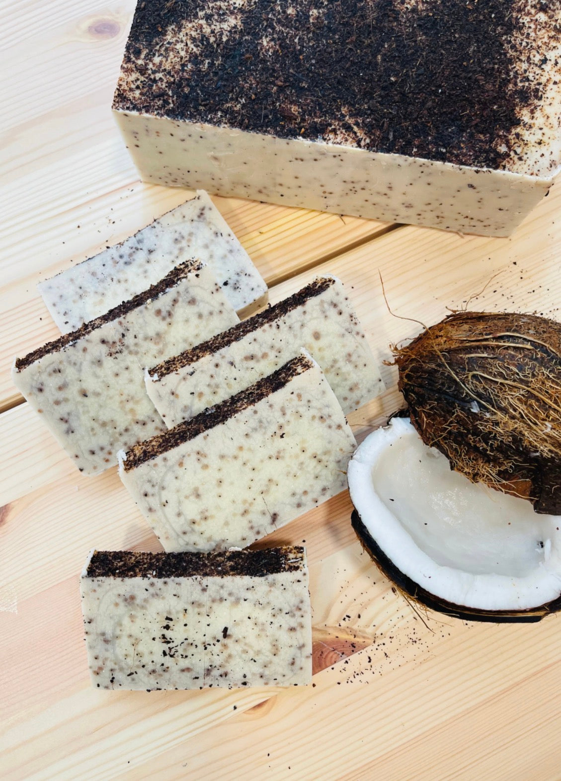 Jabón elaborado artesanalmente mediante saponificación en frío, un proceso tradicional que conserva las propiedades de los aceites vegetales y mantiene la glicerina natural generada durante la fabricación.
