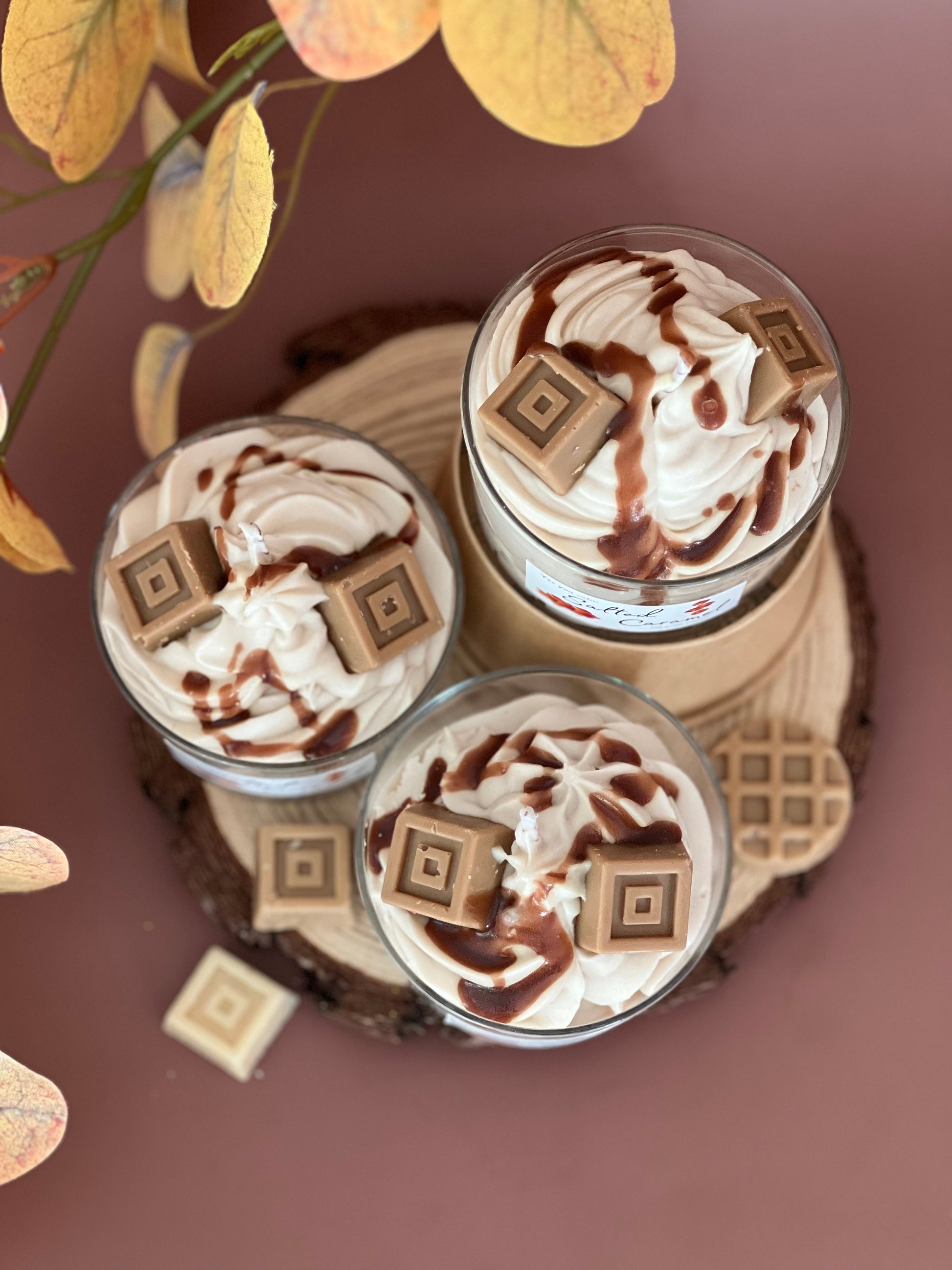 Estas velitas sirven para aromatizar el ambiente y, por supuesto, como decoración. Sé que son tan bonitas que te dará pena encenderlas, pero, si lo haces y te quedas a verlo, disfrutarás de una meditación (sin darte cuenta) mientras observas como las dos mechas de algodón empiezan a derretir suavemente la nata y los dulces que se encuentran encima, hasta quedar la superficie completamente derretida.