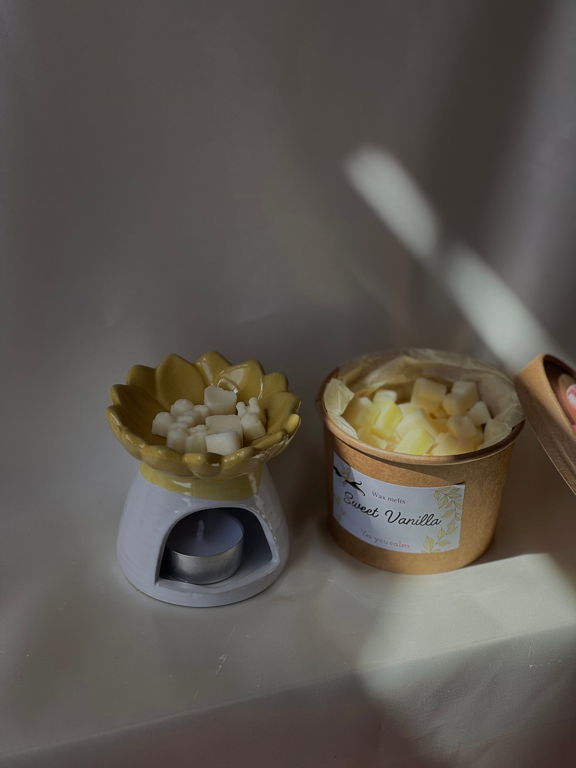 ositos de gominola, corazones y cuadraditos de mantequilla, éstas son las figuras que componen los wax melt de Sweet Vanilla. Creados para las amantes del aroma dulce y suave, en especial, el aroma de la flor de vainilla 💛